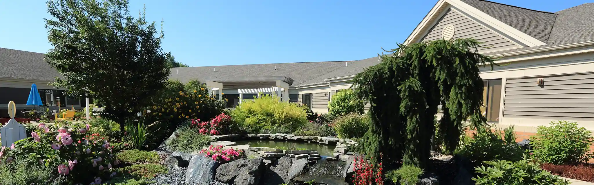 Glazier Commons features ground-level rooms with private, open suites situated around a beautiful, relaxing courtyard. Many life-enriching amenities and opportunities for social interaction are available just steps from your front door, as well as floral cutting gardens, a koi pond, and more.